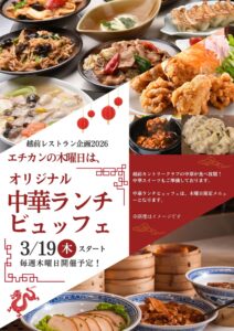 3/19㈭より中華ランチビュッフェ始まります!毎週木曜日開催予定!